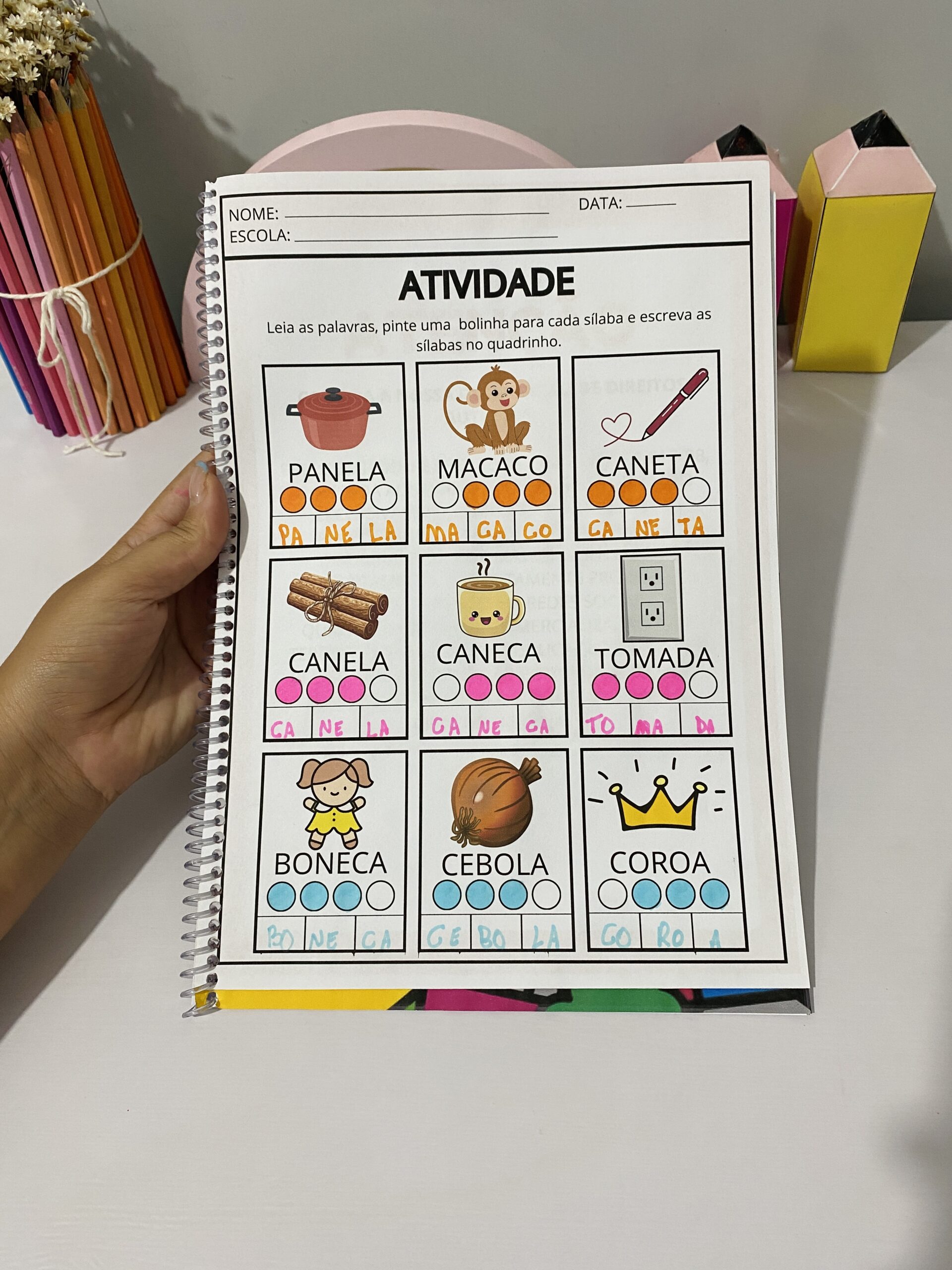 A criança vai ler, pintar e escrever as sílabas, desenvolvendo