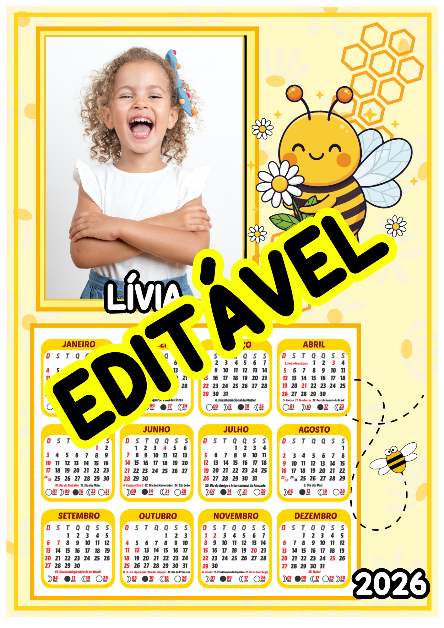 Apresente às famílias e crianças um calendário encantador, totalmente personalizável — feito para guardar os melhores momentos do ano letivo!