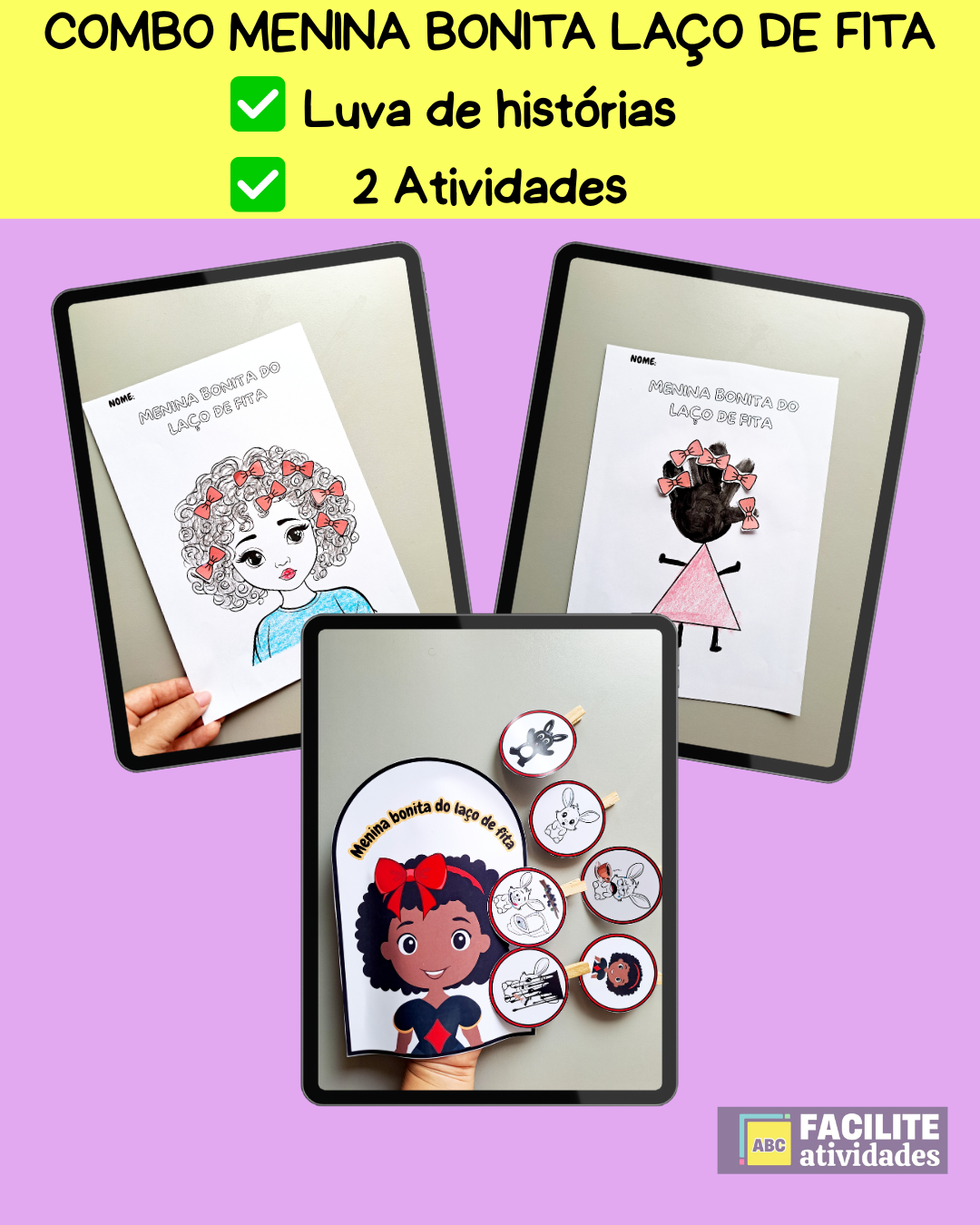 Você irá receber: Luva de história menina bonita do laço de fita 2 atividades para trabalhar o tema.