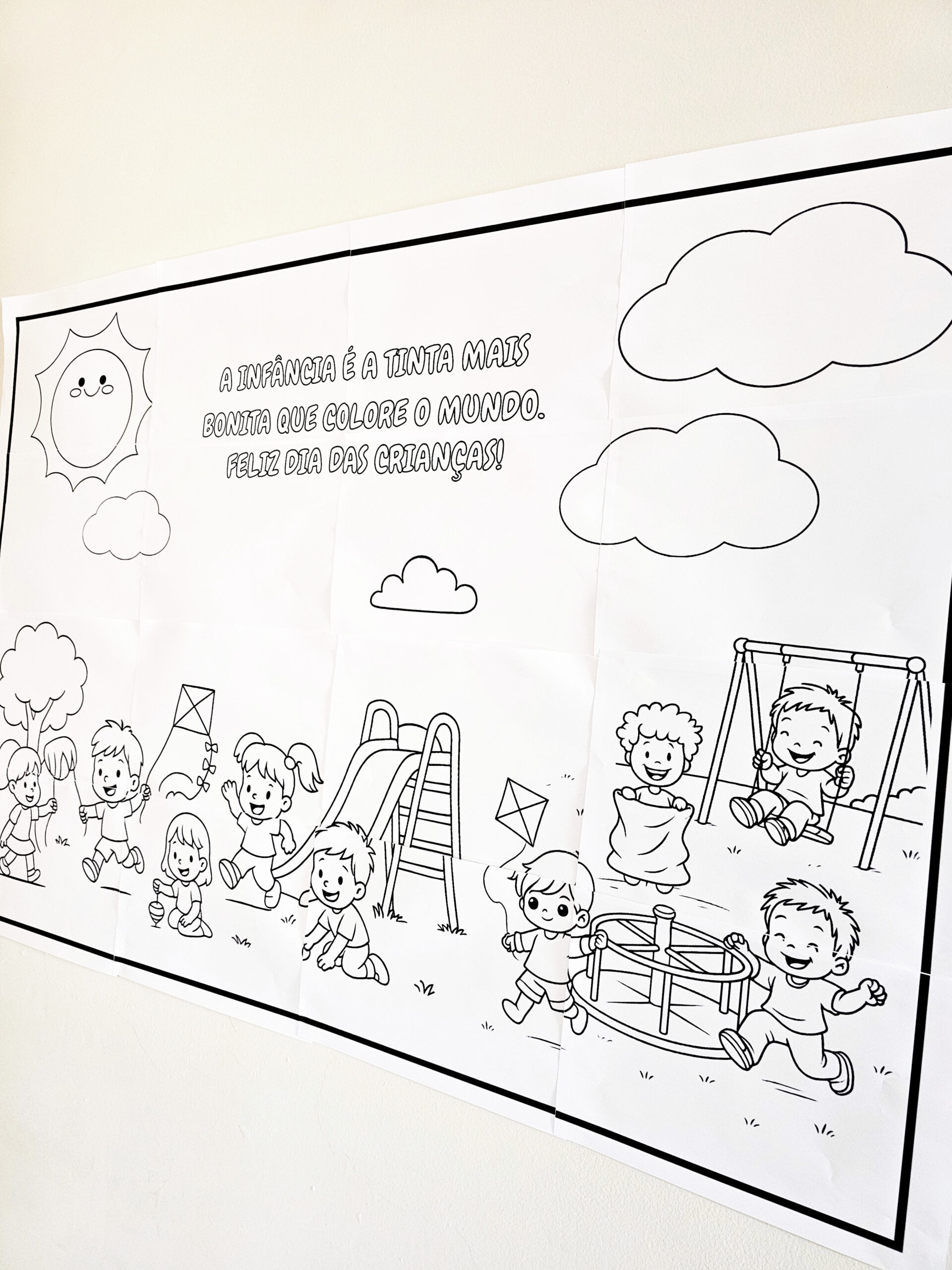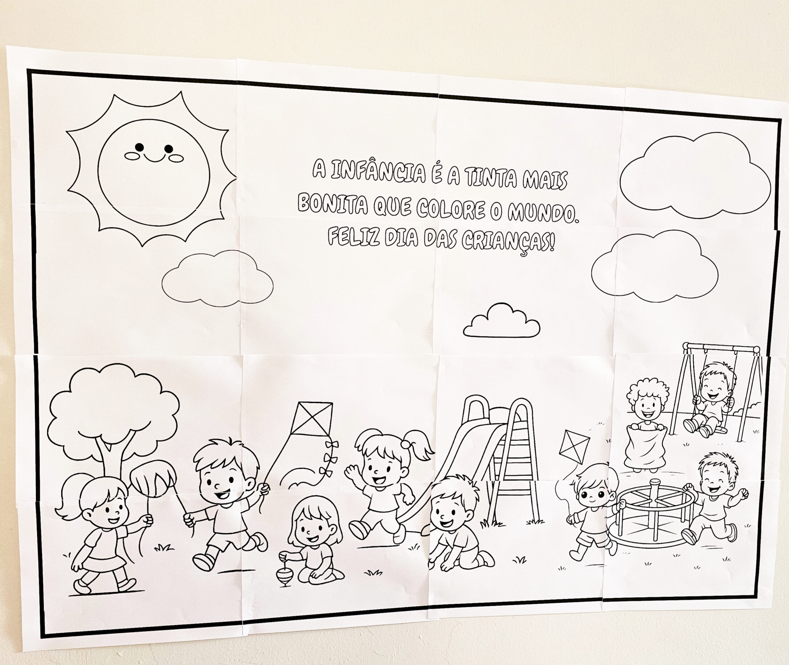 🧩 Transforme sua sala de aula em um ambiente cheio de diversão e criatividade com este painel colaborativo especial para o Dia das Crianças! O material é enviado em 16 páginas A4 (tamanho total 4×4), pronto para ser montado.
