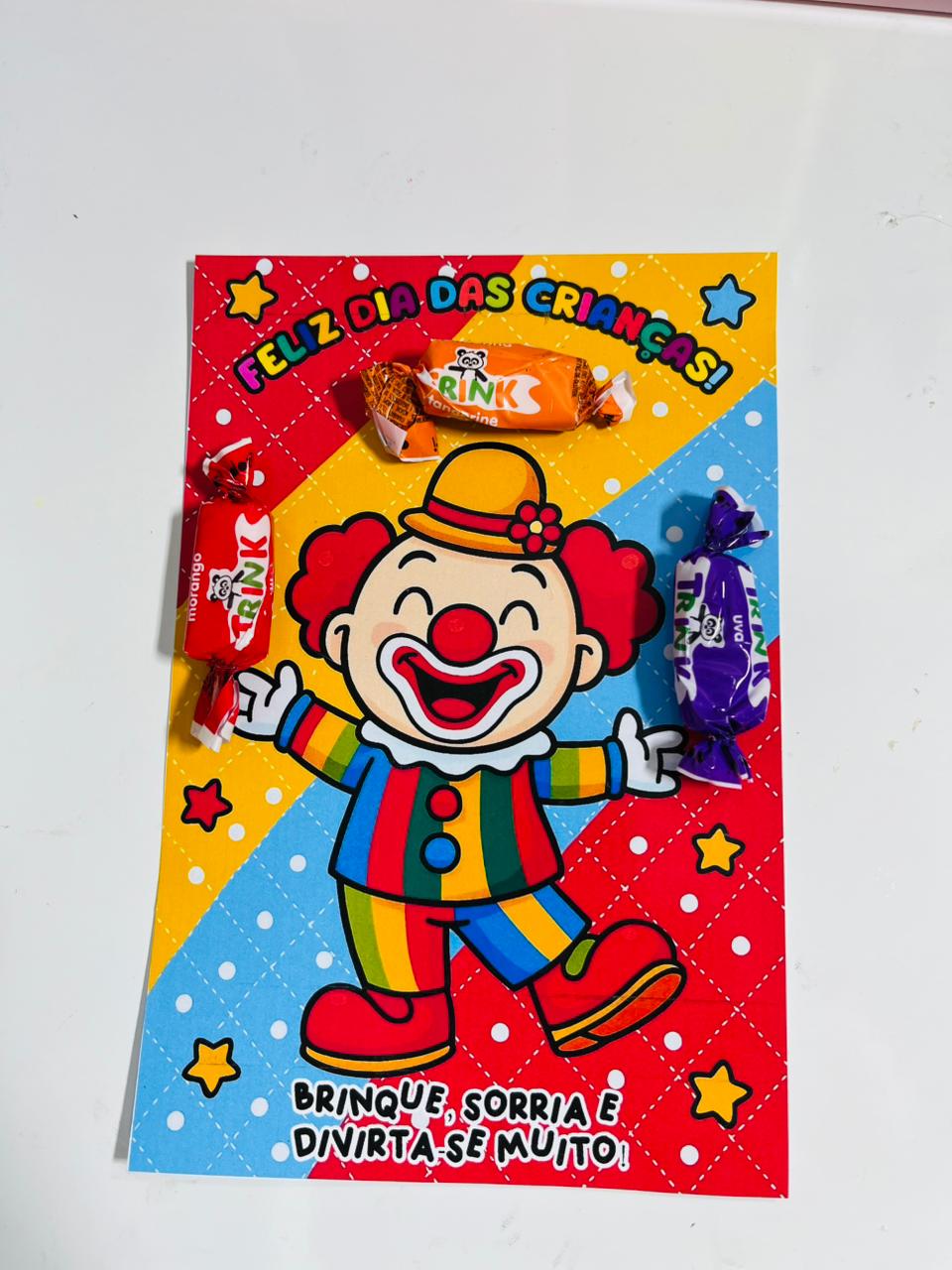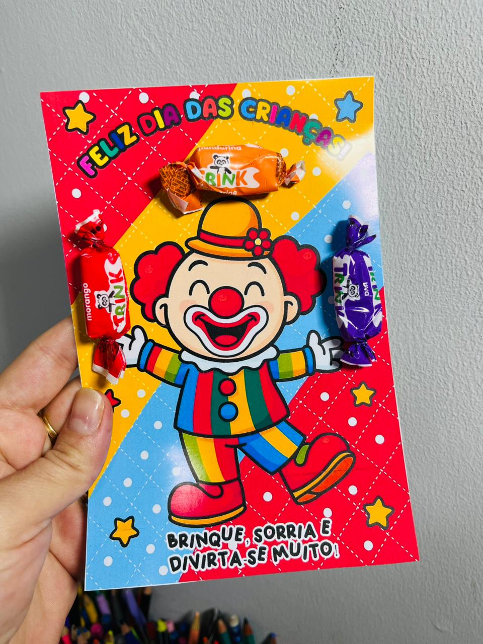 Cartão do palhaço malabarista dia das crianças