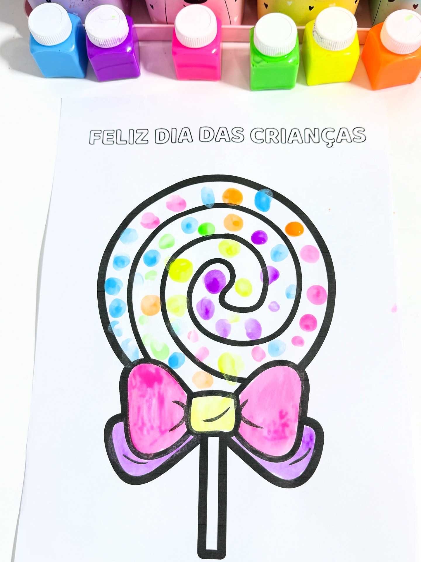 Pirulito pintura com os dedos dia das crianças